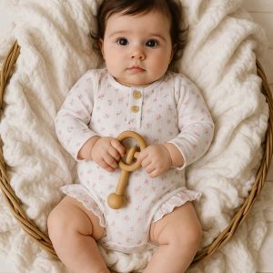 Our rose bud onesie is soft, gentle, and beautifully wearable.