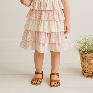 Six flowing tiers in contrasting vintage-inspired prints