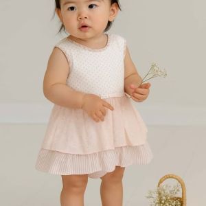 The perfect outfit for any special occasion, flower girl dress, christening or wedding, match it our navy rose frilly bums with our delicate flower crowns. Find matching bibs and flower crowns to our London Pink playsuits on our accessories page.